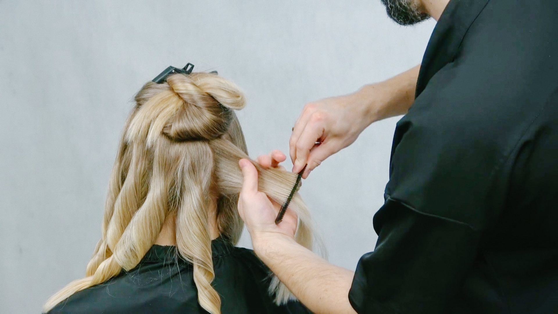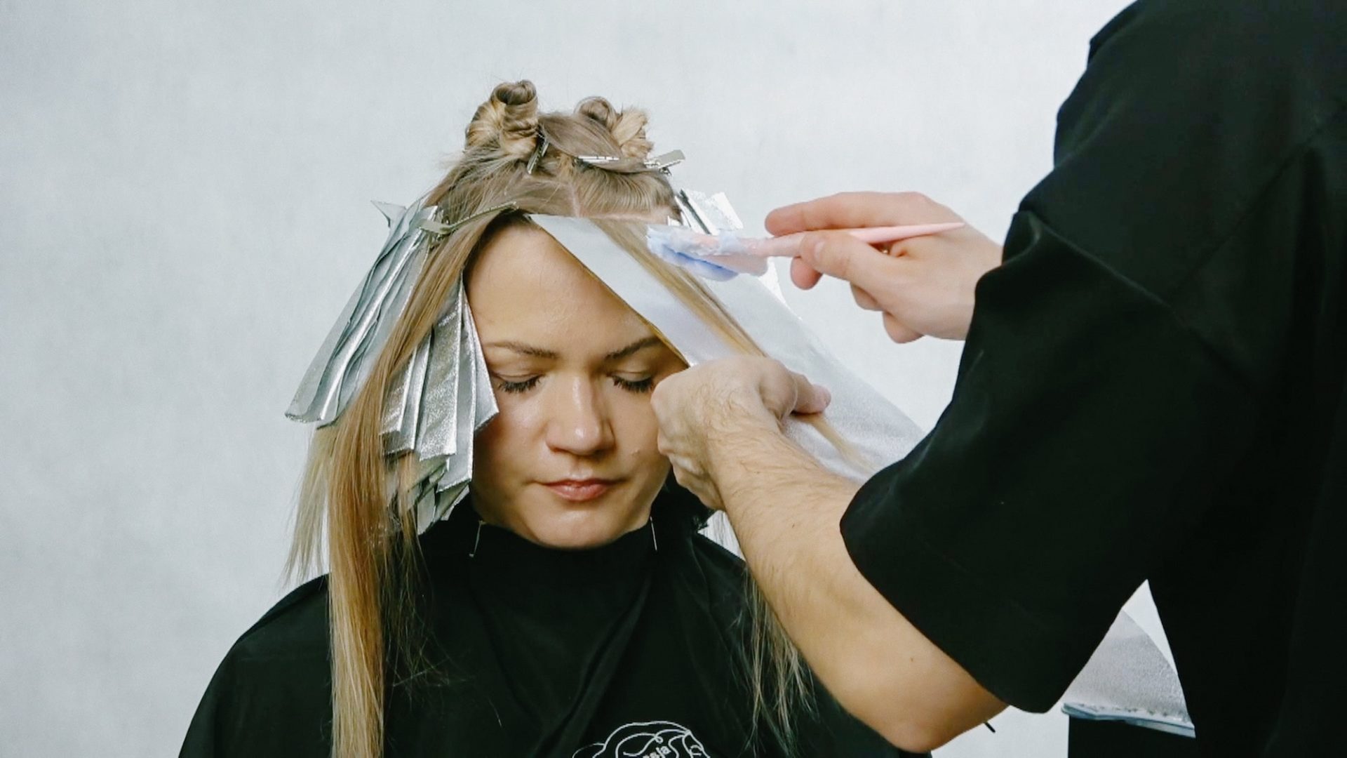 Front blond opracowywany jest jako osobny etap – Adam pokazuje, jak utrzymać czytelne zarysowanie grzywki bez ostrego odcięcia kolorystycznego. Górna partia głowy celowo pozostaje nierozjaśniona i jest integrowana z resztą koloryzacji przez precyzyjne blendowanie na granicy sekcji. Kurs kończy się omówieniem procesu mycia i jego wpływu na efekt finalny – etap, który Adam podkreśla jako często pomijany, a bezpośrednio wpływający na wynik.